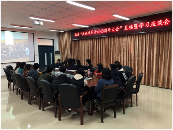 座谈会上,学院号召同学们要充分用利用课余时间,主动收听、收看“庆祝改革开放40周年大会”视频,认真学习习近平总书记的讲话精神,用实际行动努力学习,投身于改革开放和社会主义现代化建设之中。